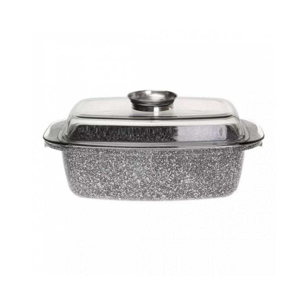 Pekač s pokrovom, prevlečenim s keramično-marmornim premazom proti prijemanju. Posoda je izdelana iz aluminijeve zlitine in ima indukcijsko feromagnetno dno. Združljiva je z vsemi kuhalnimi ploščami, vključno z indukcijskimi. Komplet vključuje toplotno odporen pokrov z difuzorjem arome, zahvaljujoč kateremu lahko pripravljeni jedi dodamo tekočine, ne da bi odstranili pokrov, kar bo preprečilo izgubo esencialnih vitaminov in jedi dalo čudovit okus.