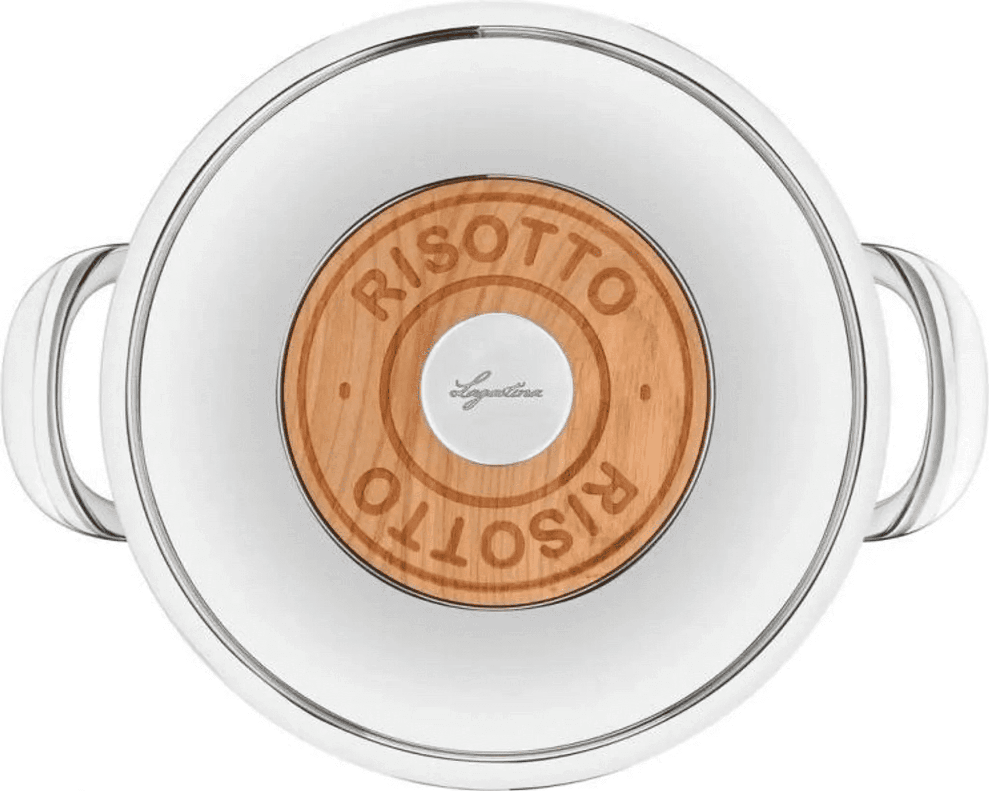 Posoda je opremljena z naprednim troslojnim dnom Lagotherm®, ki zagotavlja hitro in enakomerno porazdelitev toplote po celotni površini, kar preprečuje vroče točke in je idealno za pripravo rižot. Posoda je vsestransko uporabna, primerna je za vsa kuhališča (vključno z indukcijo) in se lahko uporablja tudi v pečici (brez pokrova) za dopeko jedi.