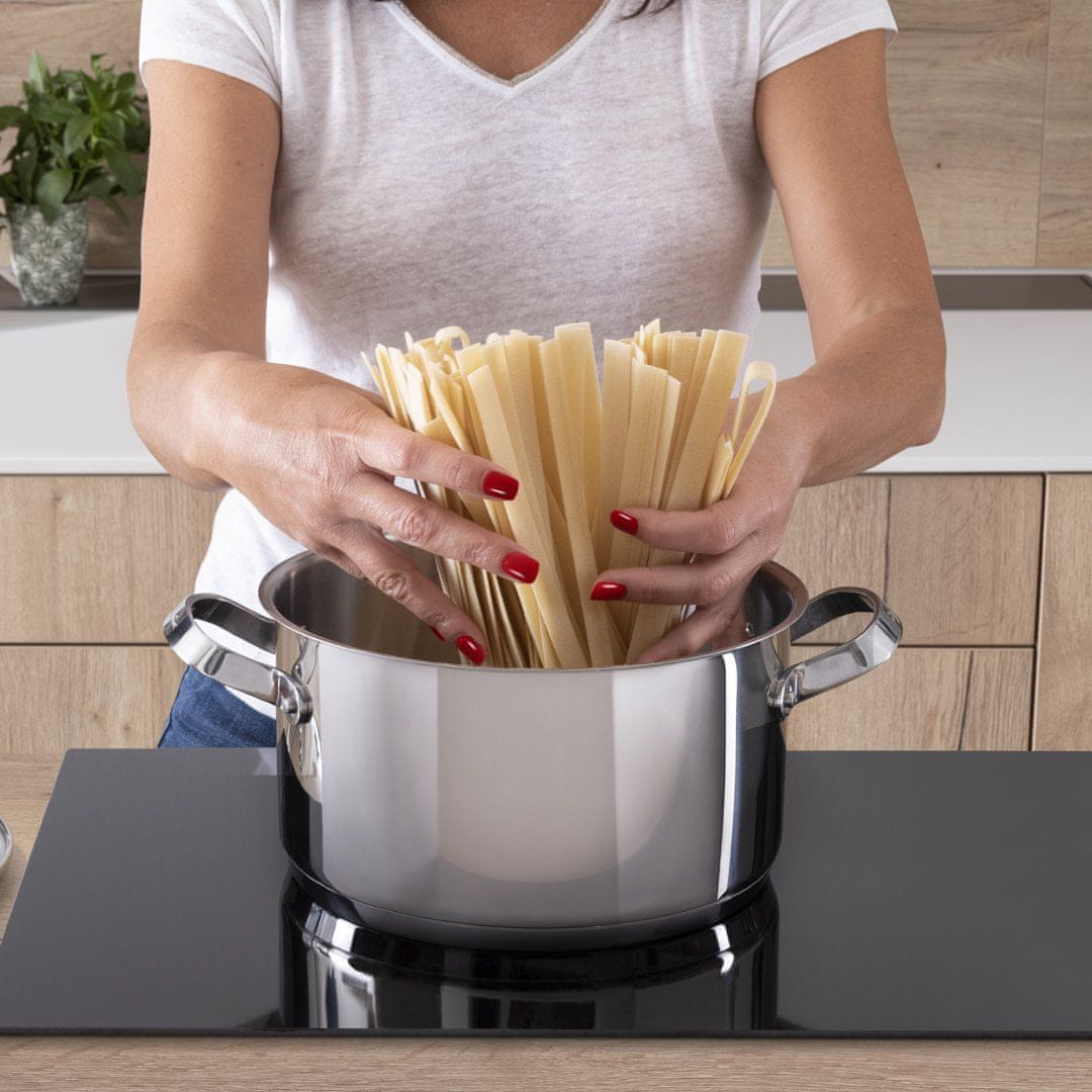 Kozica s prostornino 7,4 l in priloženim pokrovom je del linije Icona, blagovne znamke Lagostina, ki je izdelana iz 86 % recikliranega jekla. Celoten opis