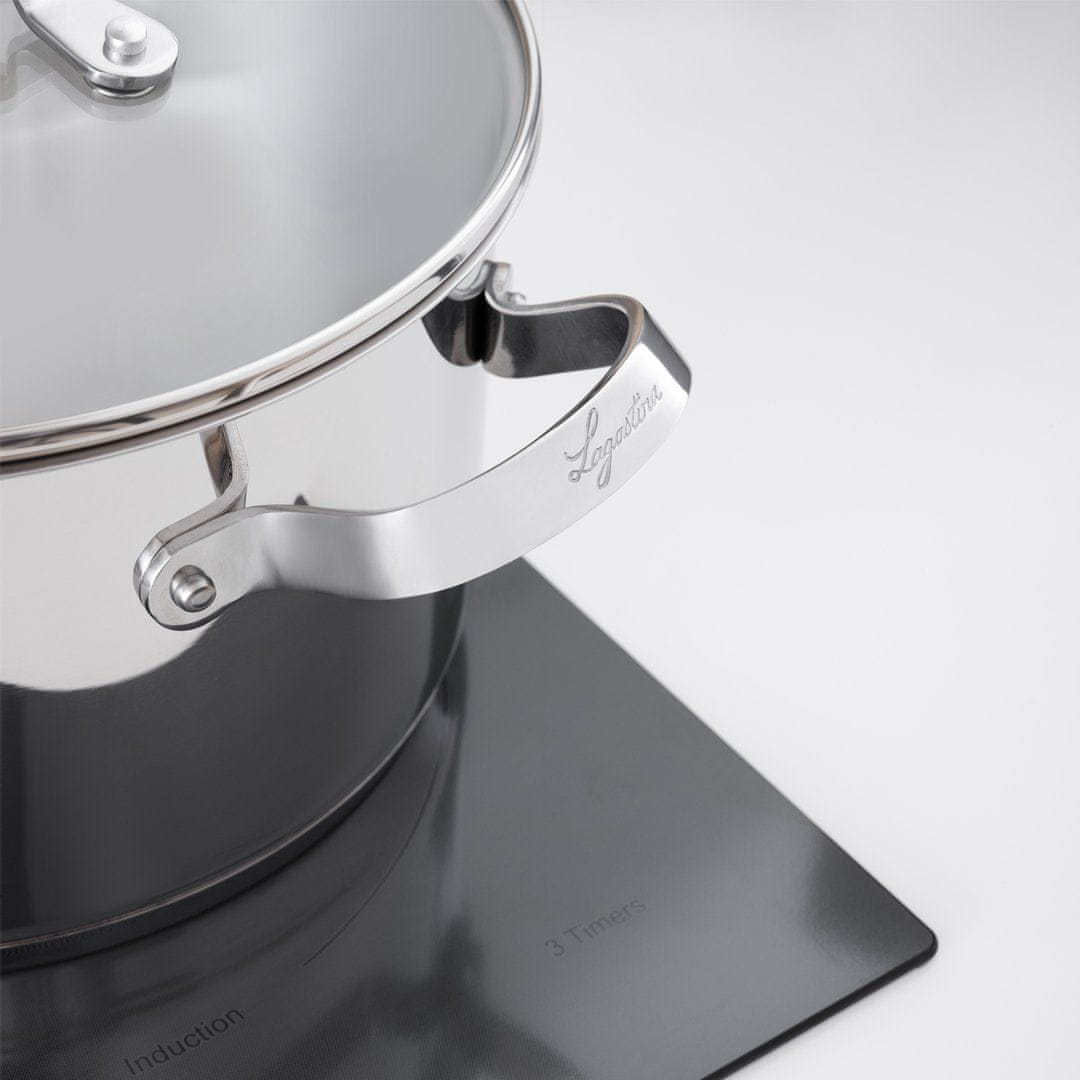 Lonec s prostornino 5,4 l in priloženim pokrovom je del linije Icona, blagovne znamke Lagostina, ki je izdelana iz 86 % recikliranega jekla. Valjasto telo v kombinaciji z novim dnom Lagotherm, zaradi večje površine omogoča bolj homogen prenos toplote v primerjavi s tradicionalnim. Večja in višja valjasta oblika s profesionalnim dizajnom poenostavlja pripravo in kuhanje živil za vso družino. Široki ročaji pritrjeni z zakovicami in steklen pokrov še tako eleganten lonec naredijo primeren za vsakodnevno uporabo. Primeren je za uporabo na vseh kuhalnih površinah, tudi na indukciji. Lahko ga postavite tudi v pečico do 250°C in po uporabi pomijete v pomivalnem stroju.