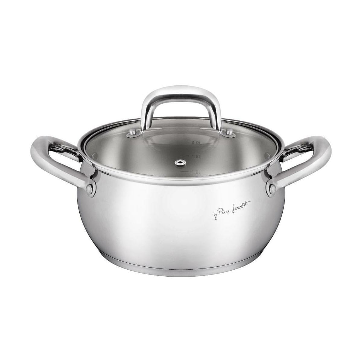 Ključne lastnosti: •Visokokakovostno nerjaveče jeklo: Izdelani iz nerjavečega jekla, odpornega proti koroziji in obrabi. •Sendvič dno: Omogoča enakomerno porazdelitev toplote za večjo učinkovitost pri kuhanju. •Ergonomski ročaji: Elegantni ročaji zagotavljajo varen oprijem in udobno rokovanje. •Stekleni pokrovi z ventilom za paro: Pokrovi omogočajo enostaven nadzor nad kuhanjem, hkrati pa zagotavljajo natančen izhod pare za učinkovito kuhanje. •Združljivost s kuhalnimi površinami: Primerna je za vse vrste kuhalnih površin – plinske, električne, steklokeramične in indukcijske štedilnike. •Enostavno čiščenje: Lonec je primeren za pomivanje v pomivalnem stroju