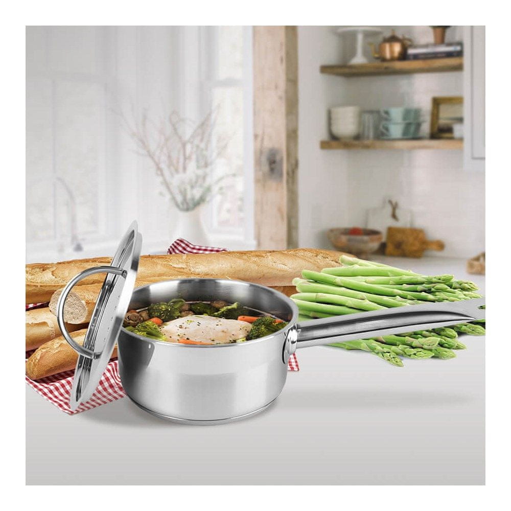 Konec s pokrovom 16 cm; 1,5 l (SKU: MR-3511–16S)Praktičen pripomoček znamke MAESTRO, ki olajša vsakodnevno pripravo obrokov in pijač. Uporaben bo doma, v pisarni ali na vrtu – povsod, kjer sta pomembna udobje in hitra postrežba. Celoten opis