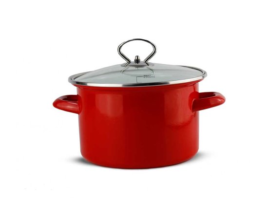 Emajlirana posoda Schafer je odporna na obrabo, brez vonja, zdravstveno neoporečna. Privlačna, kovinsko rdeča posoda je izdelana iz močnega legiranega jekla, prevlečenega s trpežnim emajliranim premazom visokega sijaja. Primerna je za vsa kuhališča. Lahko jo perete v pomivalnem stroju.Steklen pokrov omogoča, da lahko opazujemo potek kuhanja, brez da bi zaradi dvigovanja pokrova uhajala toplota. Za lažjo uporabo ima vsaka posoda v notranjosti tudi merilno lestvico. Posoda ima premaz proti obrabi in koroziji.