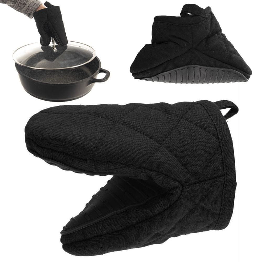 Črna bombažna rokavica za pečico z magnetom 15 cm Celoten opis