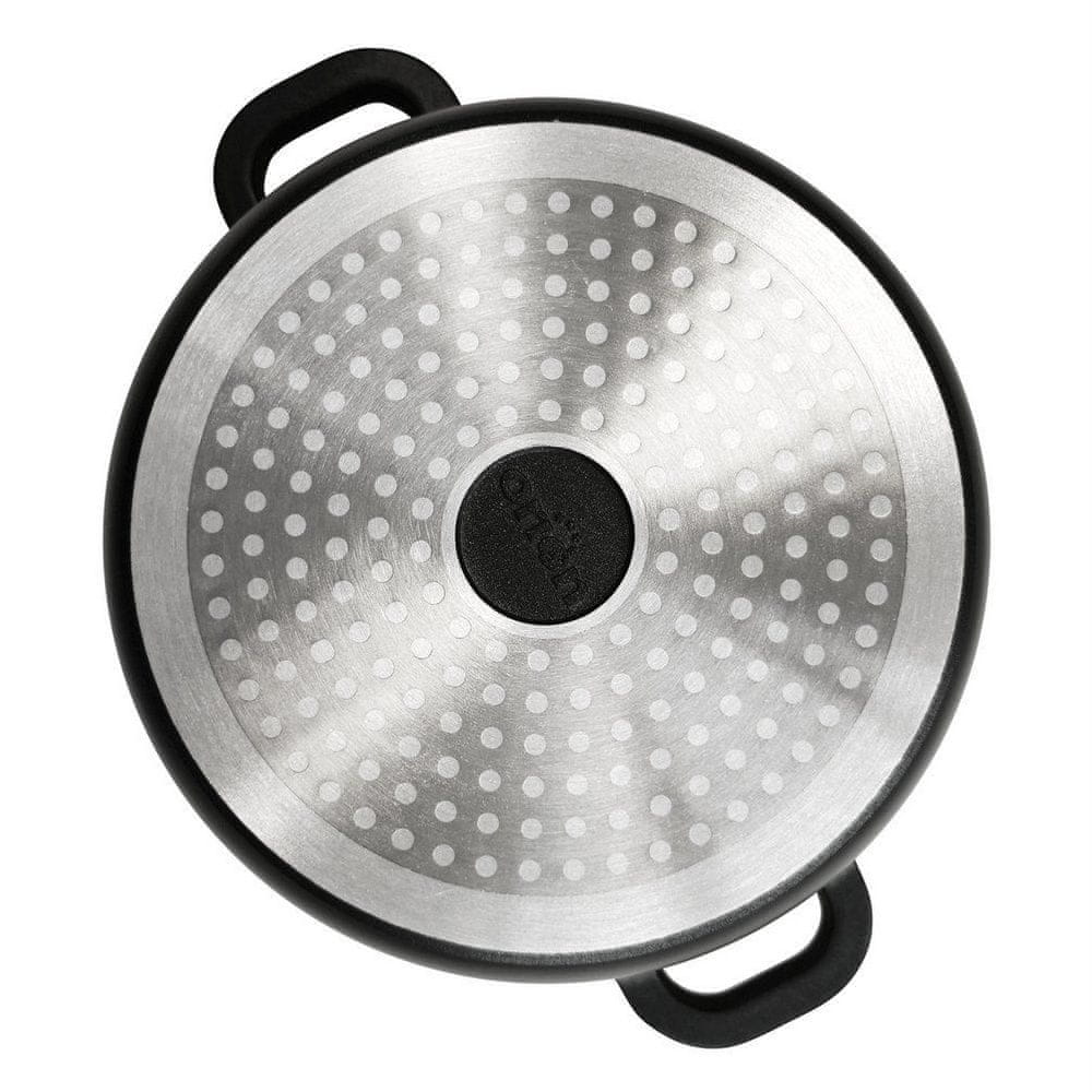 Lonec s premazom proti prijemanju, opremljen s pokrovom in odprtino za paro. Ta lonec je odličen za kuhanje in dušenje, v njem pa lahko pripravite različne jedi, juhe in omake. Premaz proti prijemanju omogoča enostavno pripravo obrokov z minimalno količino maščobe. Izgleda impresivno v kuhinji in pri serviranju jedi neposredno na mizi. Ponujamo tudi drugo posodo iz serije GRANDE. Originalni izdelek češke blagovne znamke Orion. Izdelano v skladu z evropskimi standardi.