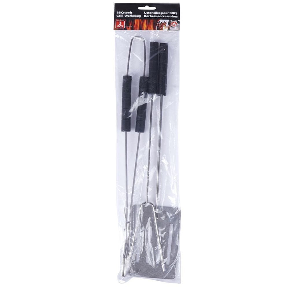 Komplet treh pripomočkov, bistvenih za peko na žaru ali v peki. Ta osnovni komplet bo izjemno uporaben pri peki na žaru. Omogočal vam bo enostavno obračanje pripravljene hrane. Dodatki so trdno izdelani in bodo ob pravilni uporabi zdržali leta. Dodatki so enostavni za čiščenje in uporabo. Originalen izdelek nizozemske blagovne znamke BBQ. Izdelano v skladu z evropskimi standardi.