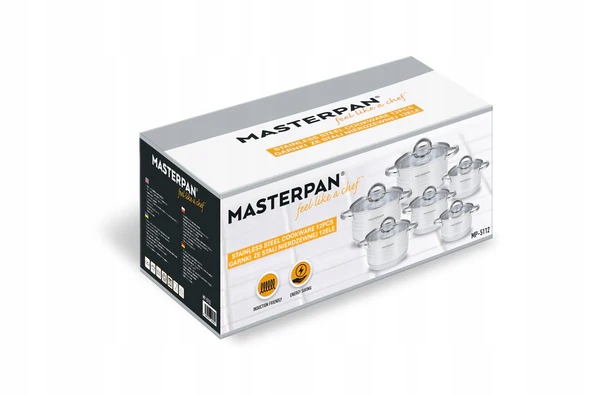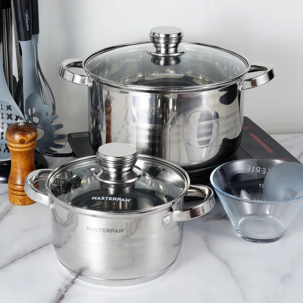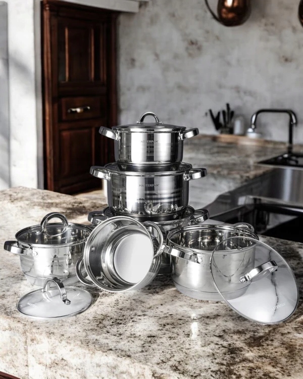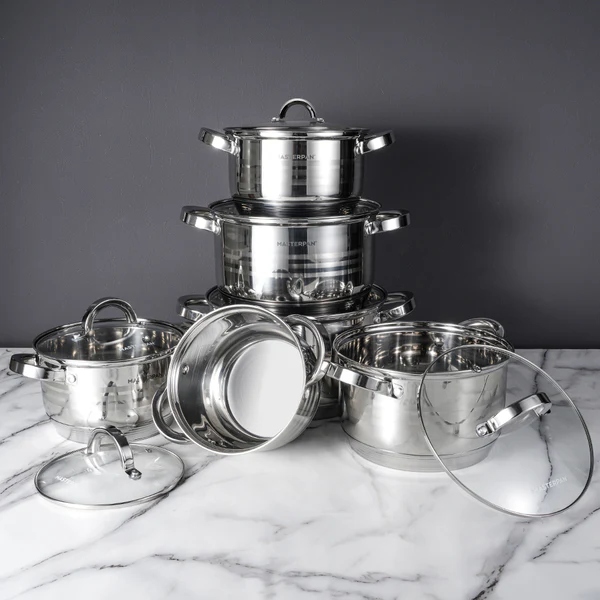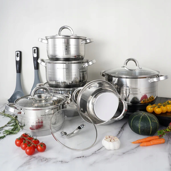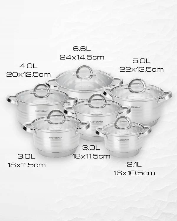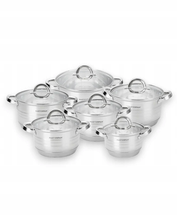 12-delni komplet loncev iz nerjavečega jekla s pokrovi Masterpan za indukcijo