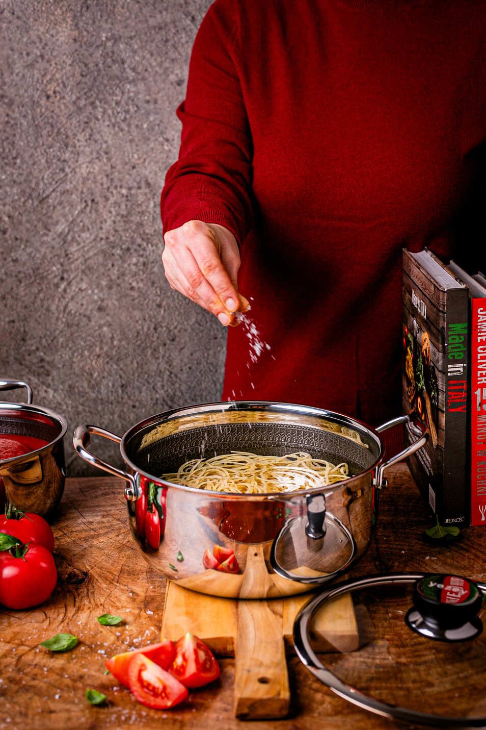 Hitreje se kuha in razvije okus – Hibridna površina ni le vizualno privlačna, ampak predvsem razvije okus sestavin. Vzorec nerjavečega jekla porjavi in okrepi okus. Pospeši vretje vode do 40 % v primerjavi z drugimi lonci. Popoln za sotiranje sestavin in dušenje omak. Kuhajte kot profesionalec v hibridnih loncih iz nerjavečega jekla. Lonci, ki jih uporabljajo profesionalci v najboljših kuhinjah.