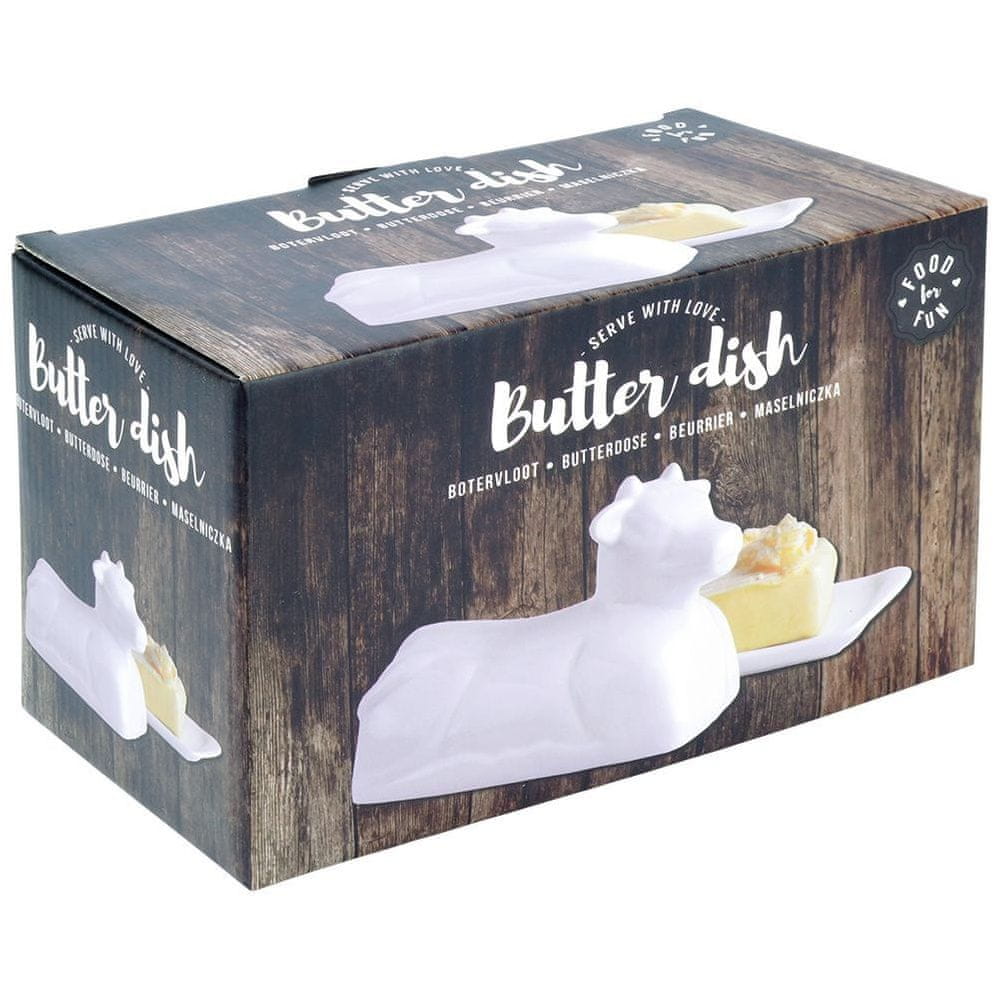 Ta porcelanasta posoda za maslo s pokrovom v obliki krave je odlična za shranjevanje in serviranje masla. Privlačen dizajn krave bo poskrbel, da bo lepo izgledala z vsakim jedilnim priborom. Enostavna za uporabo in čiščenje. Uporabna v vsakem domu. Popolna za vsakodnevno uporabo in zabave. Izdelano v skladu z evropskimi standardi.