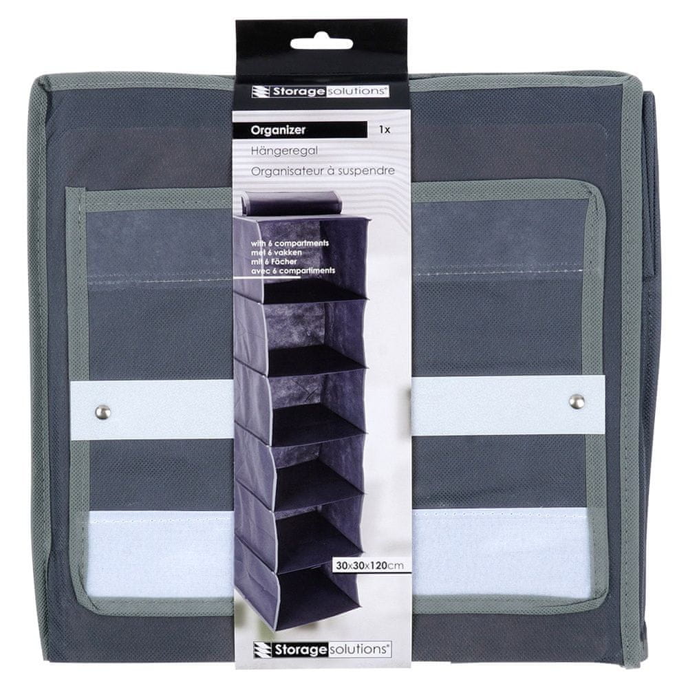 Viseči organizator za omaro s šestimi policami. Popolna rešitev za tiste, ki cenijo red in funkcionalnost. Zaradi kompaktnih dimenzij je popoln tudi v majhnih prostorih, saj maksimizira razpoložljiv prostor za shranjevanje. Originalen izdelek nizozemske blagovne znamke Storage Solutions. Izdelano v skladu z evropskimi standardi.