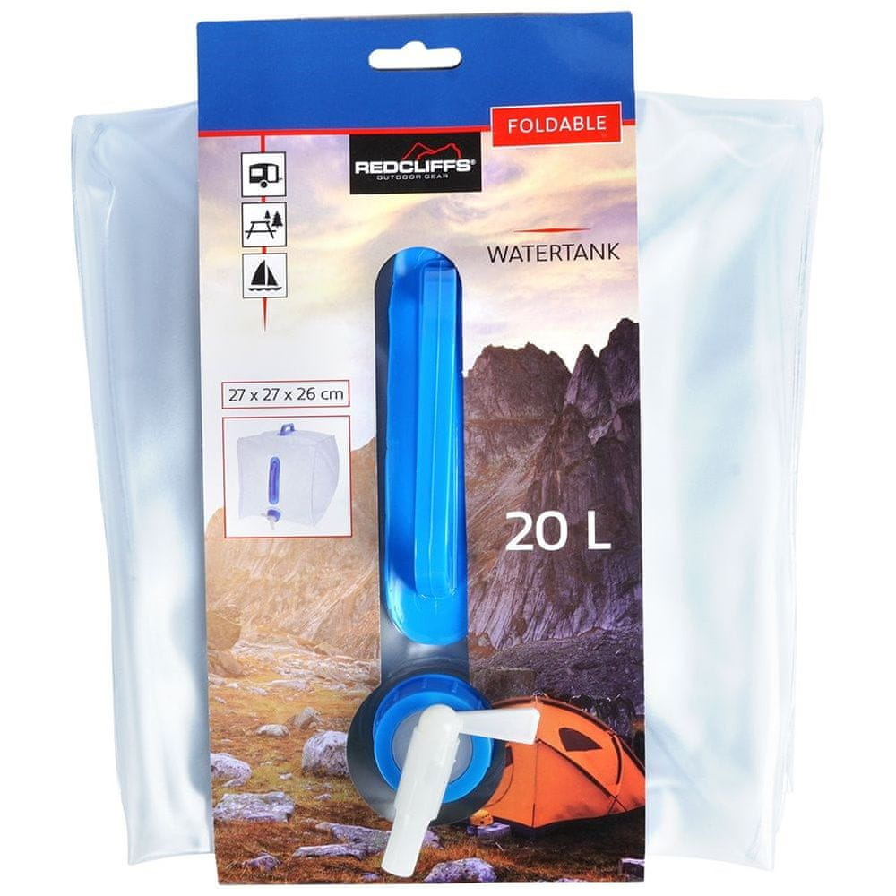 Rezervoar za pitno vodo s pipo. Popolno za izlete, kampiranje, pa tudi na vrtu. Zahvaljujoč zložljivi zasnovi ga je mogoče enostavno prevažati. Ima praktično pipo za lažje točenje vode in ročaj, ki omogoča enostavno in udobno prenašanje rezervoarja. Originalni izdelek nizozemske blagovne znamke RedCliffs. Izdelano v skladu z evropskimi standardi.