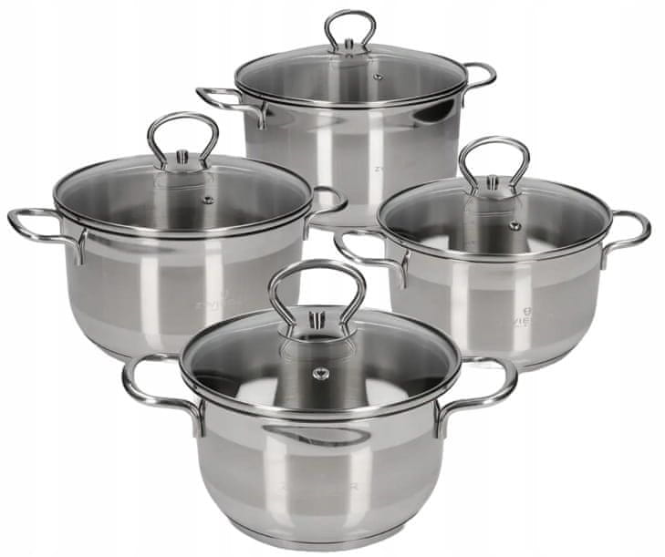 shumee Zwieger Komplet 4 loncev + 4 pokrovov Nerjaveče jeklo Indukcija plinska keramika