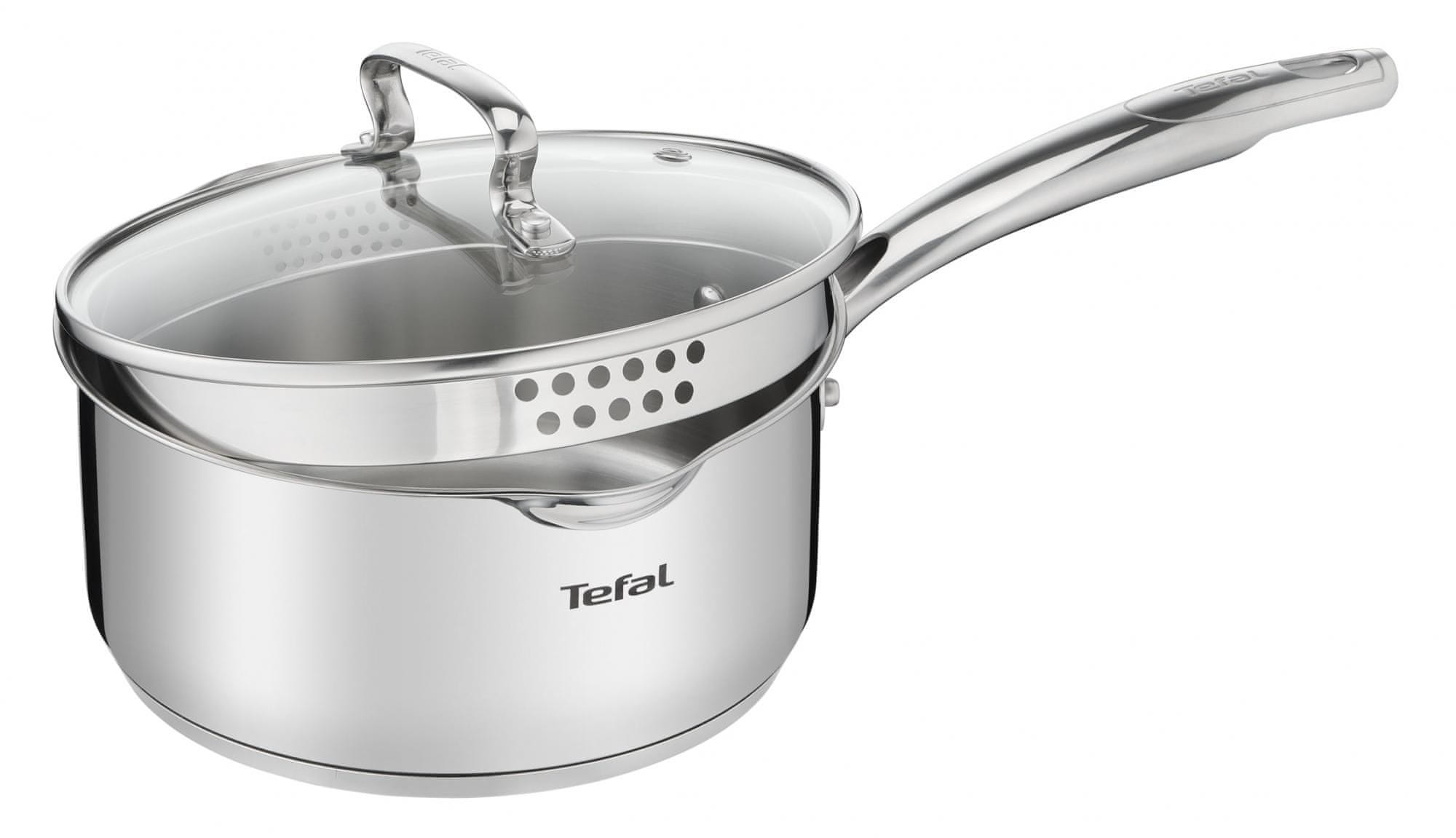 Kozica Duetto+ znamke Tefal privarčuje čas v kuhinji. Dodan ji je praktičen pokrov s cedilom, ki ima na eni strani odprtine za odcejanje testenin, na drugi pa za odcejanje riža. Kompatibilna je z vsemi vrstami kuhalnih plošč, vključno z indukcijo, v njej pa lahko pečete tudi v pečici. Lahko se opere v pomivalnem stroju. Celoten opis