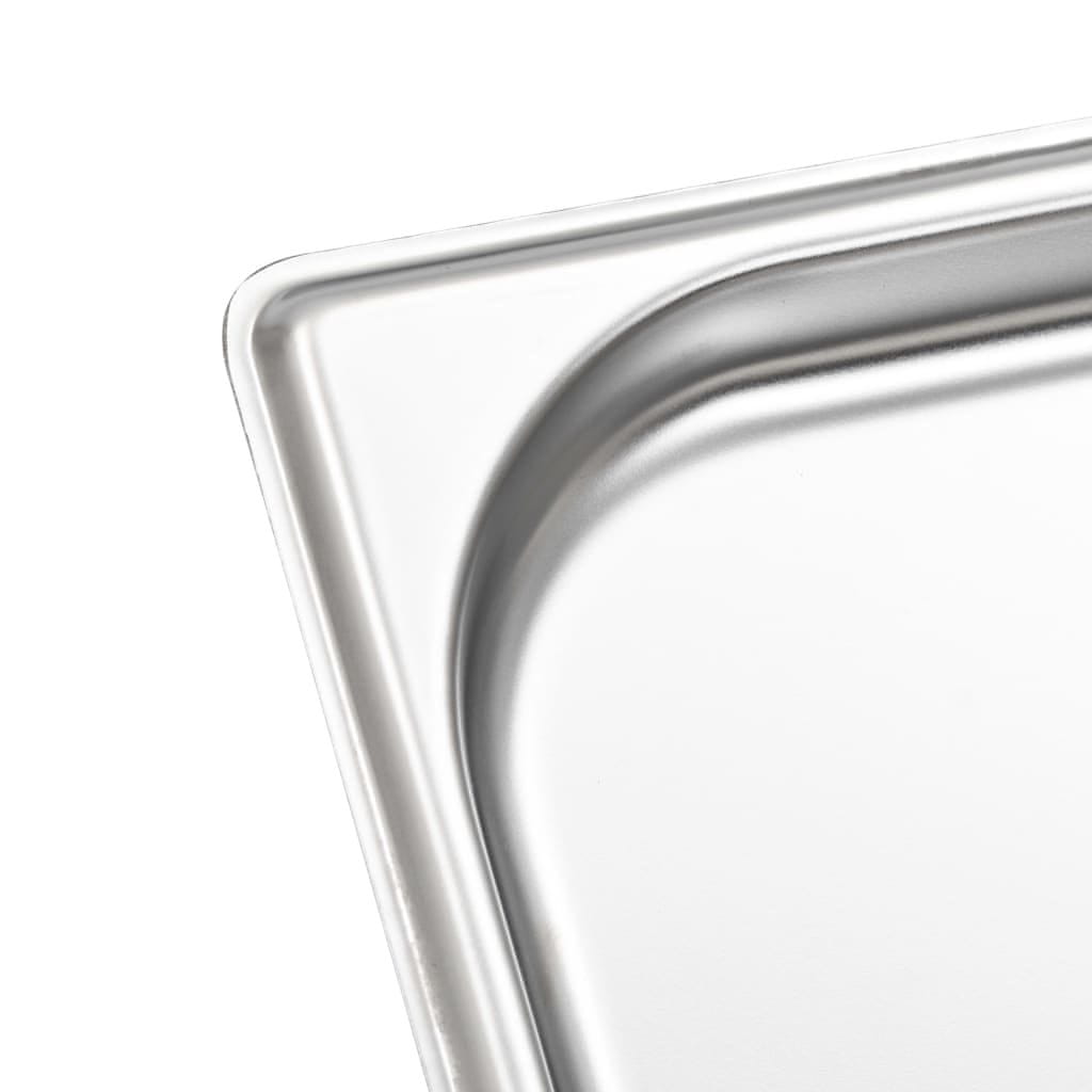 Namizne posode so izdelane iz močnega nerjavečega jekla, imajo trdno konstrukcijo in so preproste za čiščenje. Trpežen material zagotavlja zaščito pred praskami in preprosto vzdrževanje. Posoda za hrano se ponaša s standardnimi gastronomskimi dimenzijami in zato omogoča univerzalno uporabo v različnih kombinacijah. Prav zato se bo popolnoma podala v vse vaše profesionalne kuhinjske omarice in k drugi dodatni opremi, kot so vodne kopeli za gretje hrane, termo posode in solatni bari. Posode se lahko zložijo ena na drugo in tako prihranijo veliko prostora, zato so zelo praktične in idealne za uporabo v restavracijah, hotelih, na zabavah in doma.