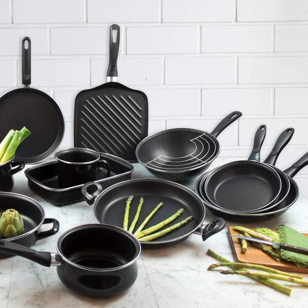 VITRINOR MAGEFESA KOZICA BLACK z dvojnim ročajem je elegantna črna posoda izdelana v Španiji iz trpežnega in kakovostnega emajliranega jekla, ki izpolnjuje vse zahteve glede kakovosti in ne vpliva na okus hrane. Prednost posode iz emajliranega jekla je predvsem njena učinkovitost, saj za kuhanje potrebuje do 30 % manj toplotne energije v primerjavi s posodo iz drugih materialov. Notranjost je ojačana z dvoslojno prevleko – teflonom (brez PFOA), ki preprečuje prijemanje hrane, na zunanjosti pa sta nanešena dva sloja črnega emajla, ki poudarjata njen lesk in eleganten videz ter jo varujeta pred mehanskimi in kemičnimi poškodbami. Primerna je za uporabo na vseh kuhalnih površinah, tudi indukciji. Po uporabi jo lahko varno pomijete v pomivalnem stroju, za ohranitev njenih funkcionalnosti pa priporočamo ročno pomivanje.
