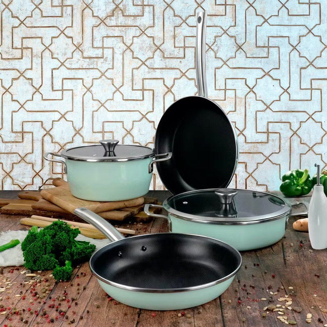 22-centimetrska ponev Magefesa »Nordic« v pastelno zeleni barvi obljublja do 50% prihranka energije pri kuhanju. Je enostavna za uporabo, saj se temperatura enakomerno porazdeli po dnu posode, hrana se zahvaljujoč 2-slojnemu premazu med kuhanjem ne bo prijemala, hkrati pa je posoda tudi enostavna za čiščenje – zadostuje že mehka gobica in topla voda. Zunanjost posode je iz emajliranega jekla v sijoči pastelni barvi, notranji premaz pa ne vsebuje PFOA. Uporabljate jo lahko na vseh kuhalnih površinah, tudi na indukciji, primerna pa je tudi za rabo v klasični pečici. Lahko jo pomivate v pomivalnem stroju.