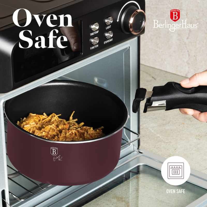 Iščeš primeren set posode za svojo kuhinjo? S tem kompletom boste dobili vse potrebne kuhinjske pripomočke, ne glede na to, ali kuhate zase ali za več oseb. Velika prednost je, da lahko pri preverjenem proizvajalcu BERLINGERHAUS naročite več kosov posode hkrati. Komplet kuhinjske posode združuje enoten dizajn, poleg tega pa je rdeča barva celotnega kompleta univerzalna in bo izstopala v vsaki kuhinji.