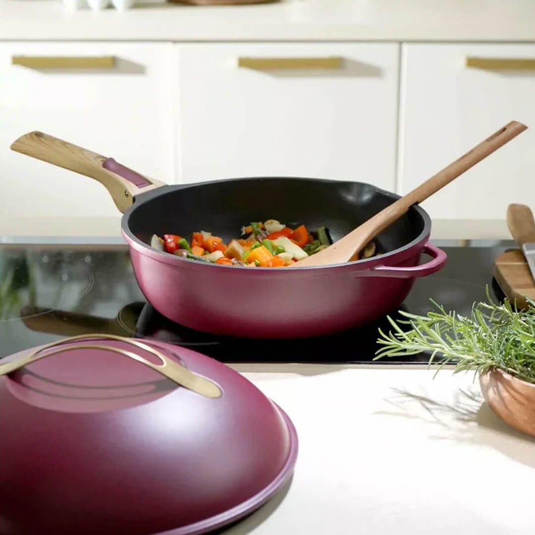 Ponev s pokrovom Fabuleuse 8v1 / 28cm / vinsko rdeča / aluminij
