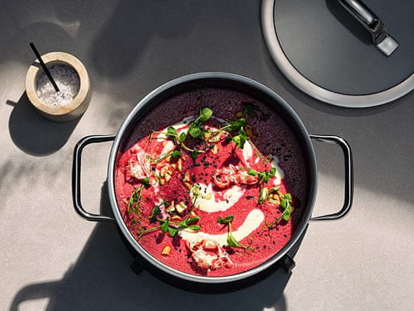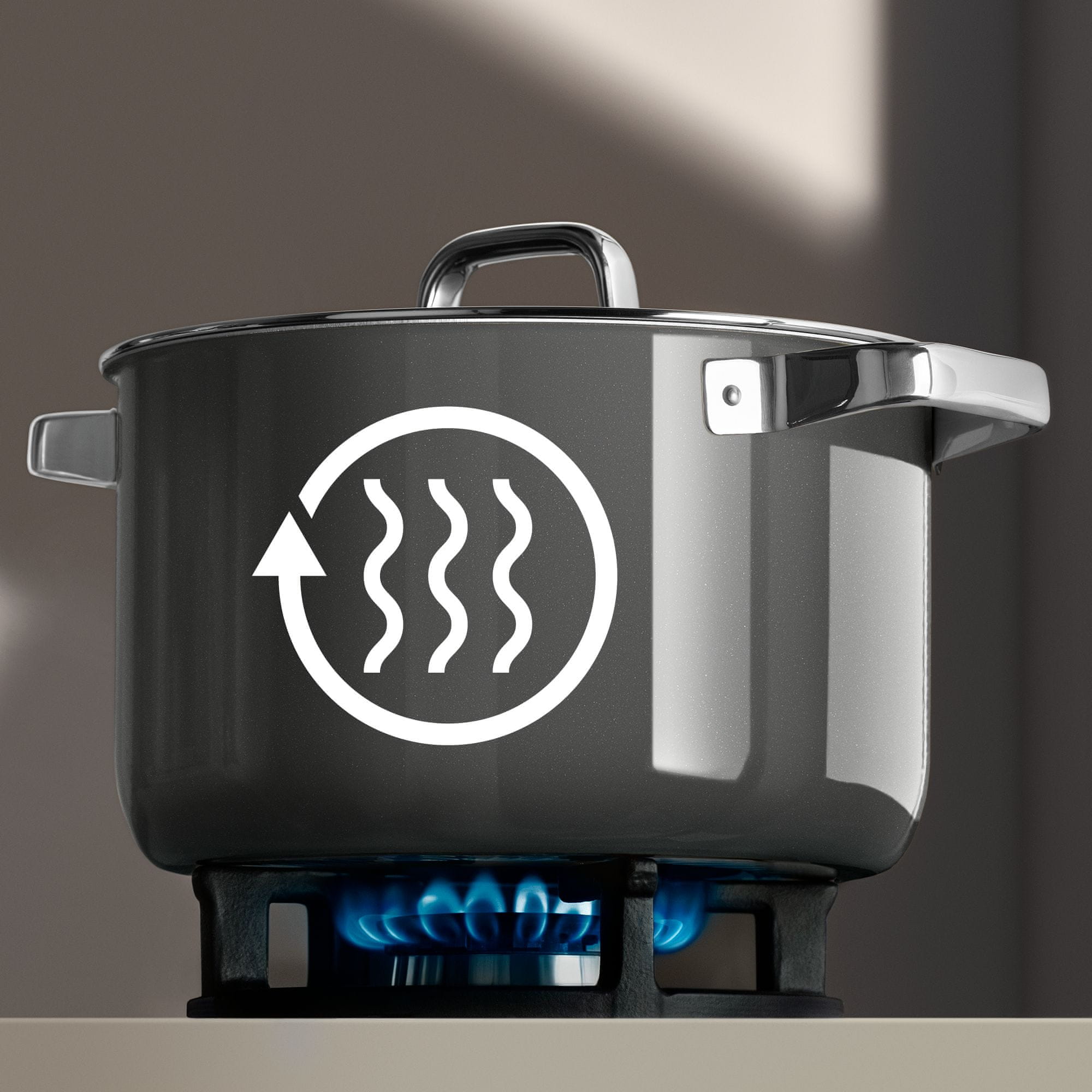 Zaradi odličnega zadrževanja toplote posoda omogoča natančno kuhanje in optimalne rezultate pri pripravi raznovrstnih jedi. Votli ročaji zmanjšujejo prenos toplote in ostanejo hladni na dotik, medtem ko je posoda primerna za vse vrste kuhalnih površin, vključno z indukcijo. Set vključuje tri jušne lonce s steklenimi pokrovi (16/20/24 cm) ter kozico (16 cm) – popoln komplet za vsako kuhinjo.