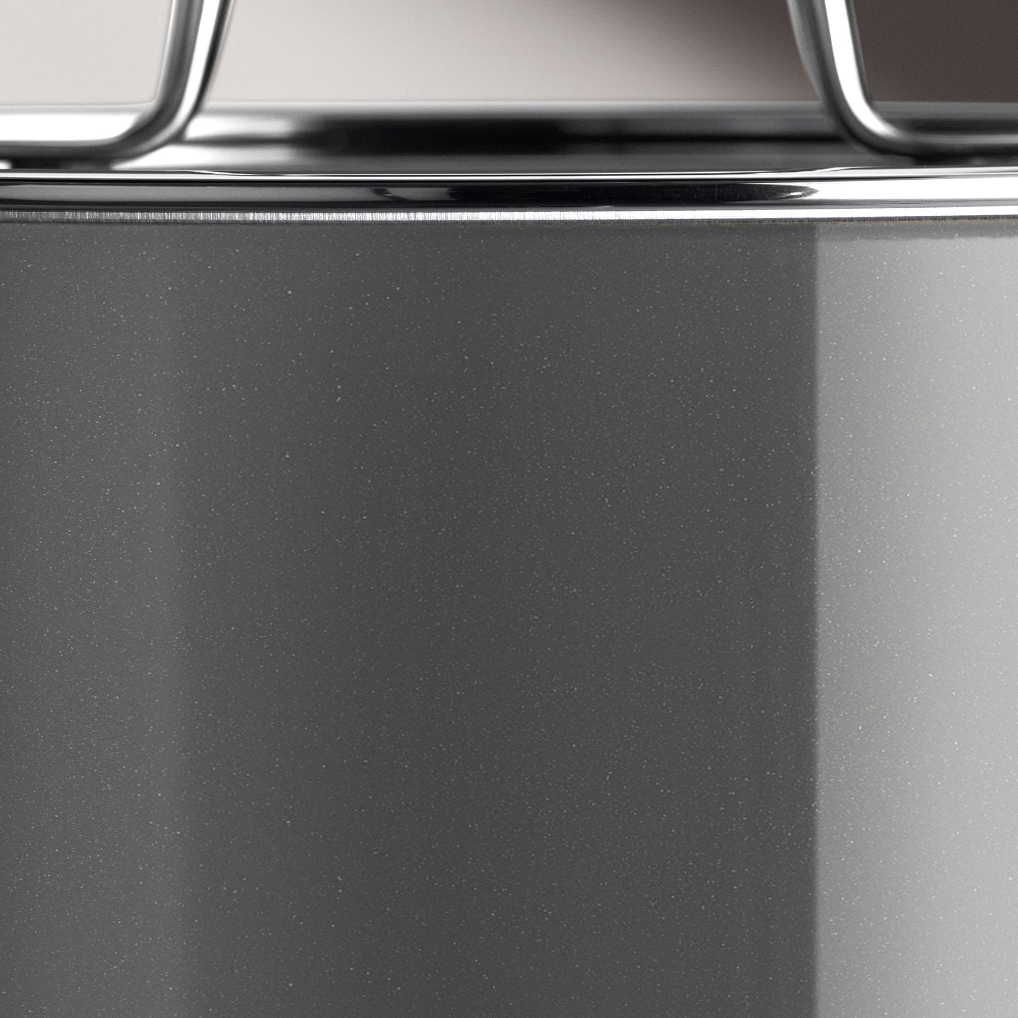 WMF Mineral Pro set posod je popolna izbira za vse, ki iščejo trajnost, učinkovitost in slog v eni kuhinji. Izdelan v Nemčiji iz inovativnega materiala Fusiontec, ki združuje 20 naravnih mineralov, je ta komplet odporen proti praskam in izjemno vzdržljiv, hkrati pa zagotavlja enakomerno porazdelitev toplote za obroke, polne okusa. Vrhunska zasnova in sijoč kovinski zaključek dodata vsaki kuhinji pridih elegance in profesionalnosti.