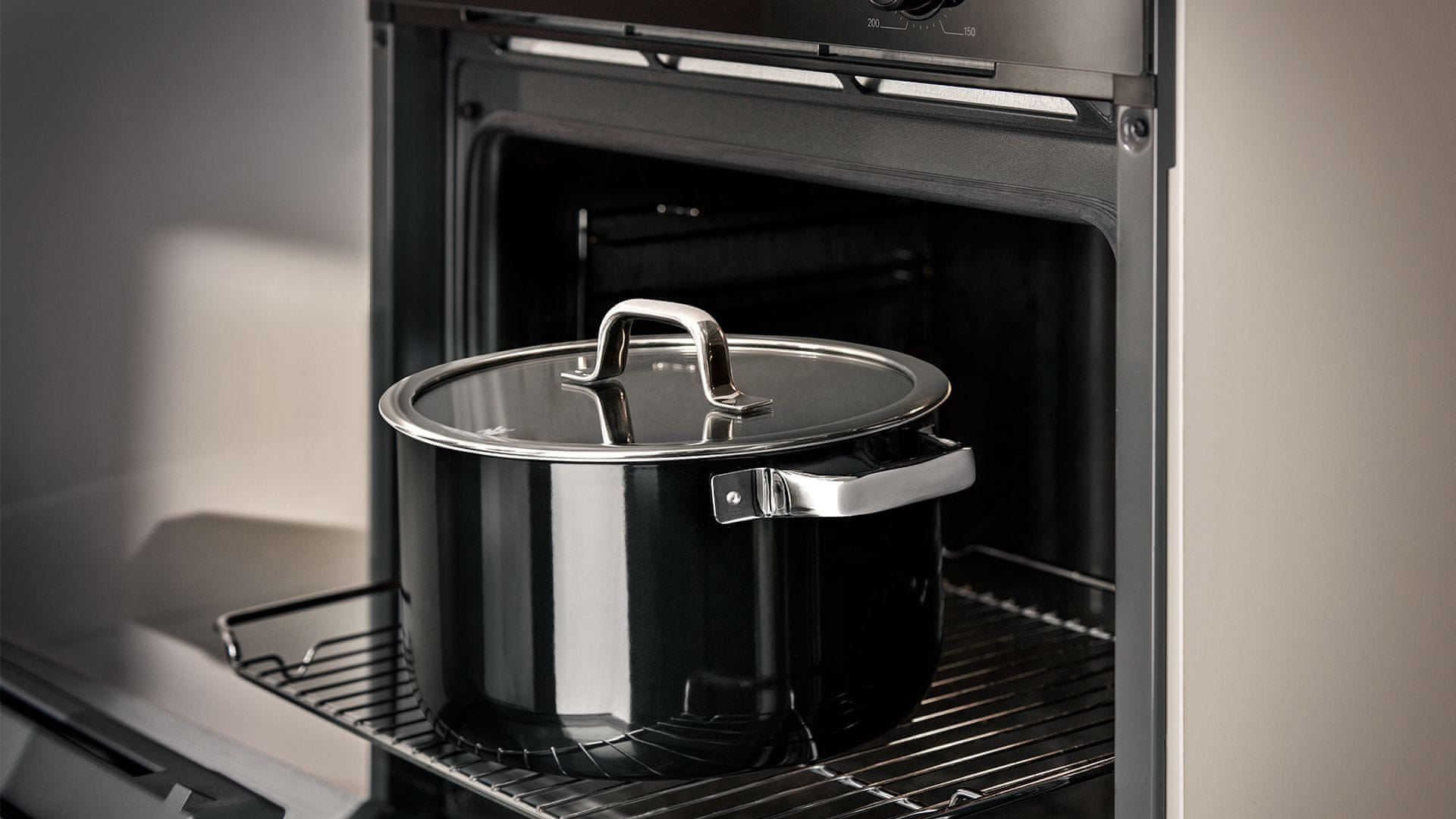 | Uporaba v pečici | Da – posoda do 250 °C, pokrov do 180 °C |