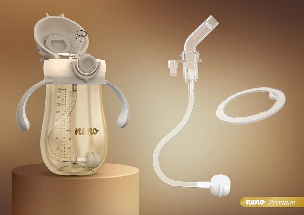 Neno Mio 2 je praktična zamenjava za otroško stekleničko in odličen način, da otroka naučite samostojnega pitja. Steklenička, ki ne pušča in je odporna na udarce, ima slamico z utežjo, ki otroku omogoča pitje pod različnimi koti. Pitje skozi slamico vpliva tudi na mišice v ustih, kar prispeva k razvoju pravilnega požiranja.