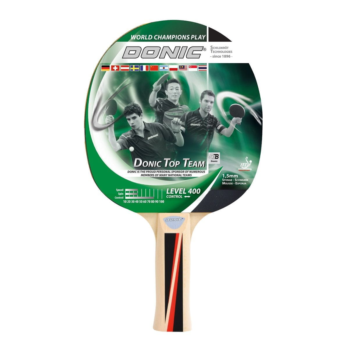Linija loparjev za namizni tenis DONIC Top Team je zasnovana za igralce različnih nacionalnih reprezentanc, kot so Olivier Brice (Francija), Li Ping (Kitajska) in Jakub Dyjas (Poljska). Lopar za namizni tenis DONIC Top Team 400 je osnovni lopar za enostavno igro.