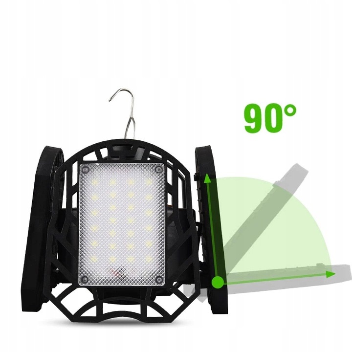 • Nastavljiva nosilca svetilke – 4 zložljive LED plošče, ki se zavrtijo za 90°, da osvetlijo točno tam, kjer jih potrebujete