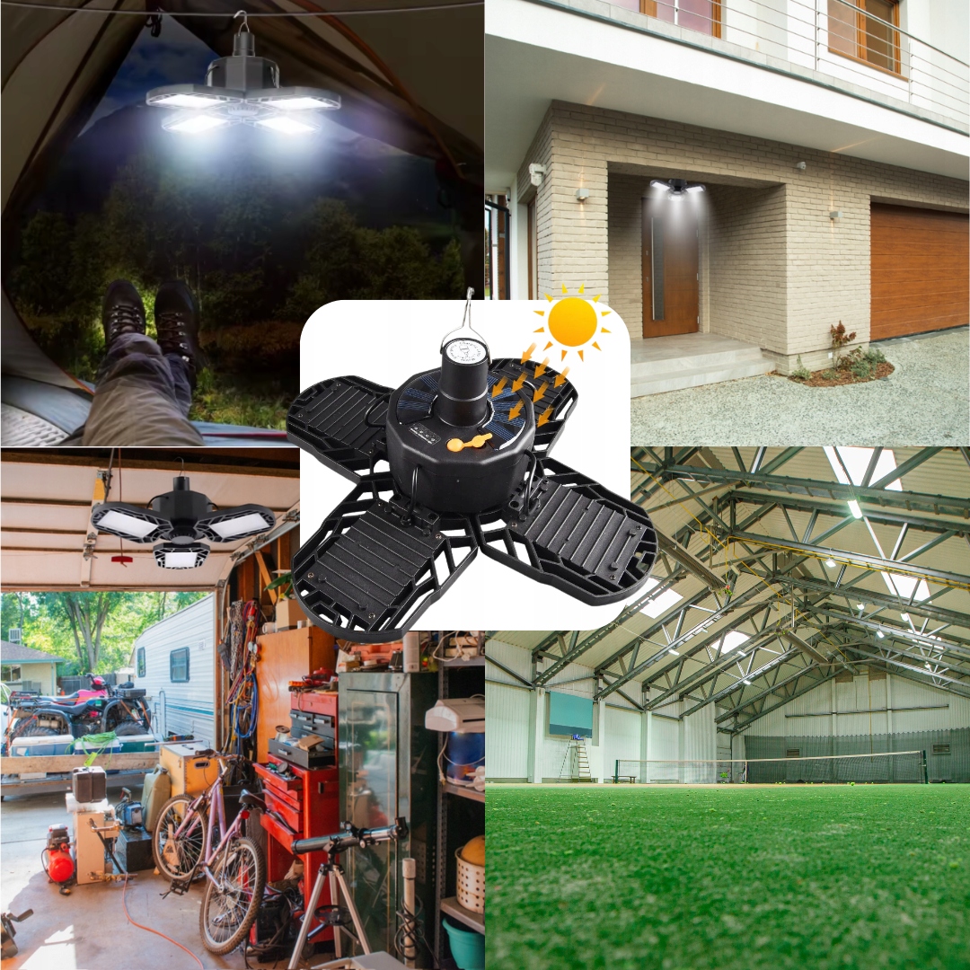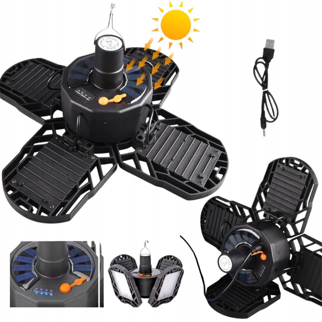 S to prenosno LED svetilko s sončno celico osvetlite prostor tam, kjer jo najbolj potrebujete. Ta moderna svetilka je zasnovana z mislijo na vzdržljivost, funkcionalnost in visoko svetlost. Ima štiri nastavljive svetlobne ročke, se lahko polni prek USB-ja ali sončne energije in je odlična za delavnico, kampiranje ali nujne primere.