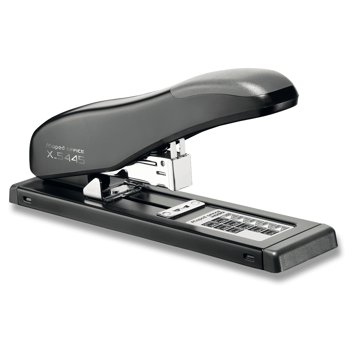 Udobna sponkarica Maped Expert HD 90 s kovinskim mehanizmom proti zamašitvi žice. Mehko območje stiskanja. Nastavljiva globina vstavljanja papirja do 55 mm. Velika zmogljivost pladnja za žice, zmogljivost 24/6–8 za 110 žic, 23/8–10 za 108 žic, 24/10 in 23/12–13 za 105 žic. Za 90 listov. 10 let garancije.