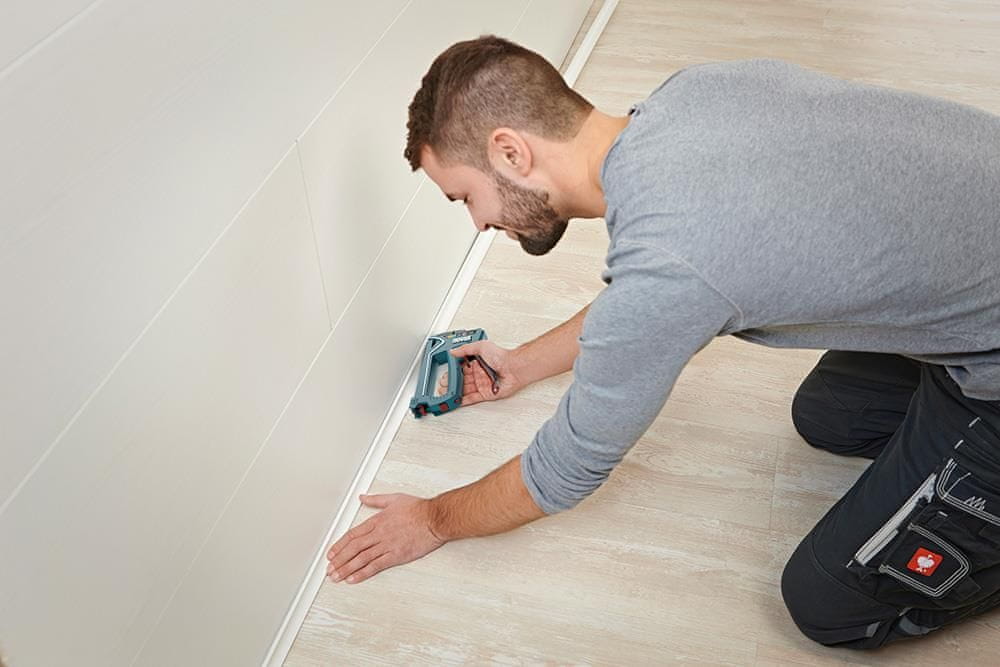• za spenjanje tkanin, tekstila, preprog, mehkih plastičnih plošč (2–10 mm), žične mreže, tankih lesenih stebričkov, usnja, papirja/kartona, povoščenega/oljenega papirja, izolacijske podloge (steklena volna), aluminijastih laminiranih izdelkov, plute (2–10 m), strešne lepenke, okrasnih/kotnih letev