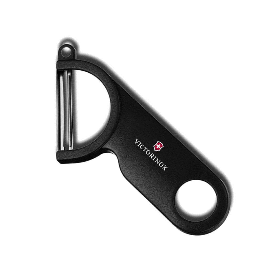 Ta praktičen univerzalni lupilec Victorinox se ponaša s polkrožno obliko, lahkim ergonomskim ročajem iz črne plastike ter kakovostnim rezilom iz nerjavečega jekla. Omogoča enostavno odstranjevanje tudi najtanjših olupkov kumaric, paradižnika, korenja, krompirja … Primeren je za pomivanje v pomivalnem stroju.