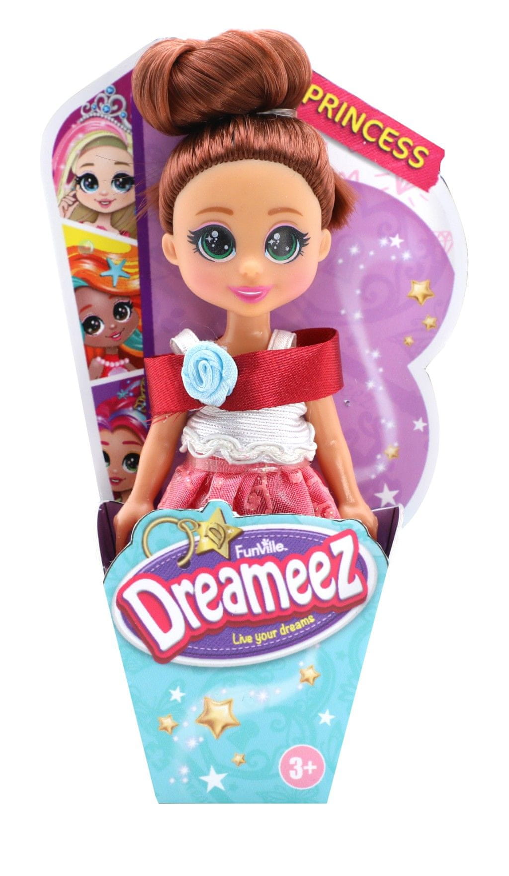 Dreameez mini princeska v stožcu je prikupna punčka, velika približno 12 cm, oblečena v princeskina oblačila. Ima dolge lase, ki jih lahko otroci krtačijo in negujejo, kar prinaša veliko zabave pri igranju pravljic.
