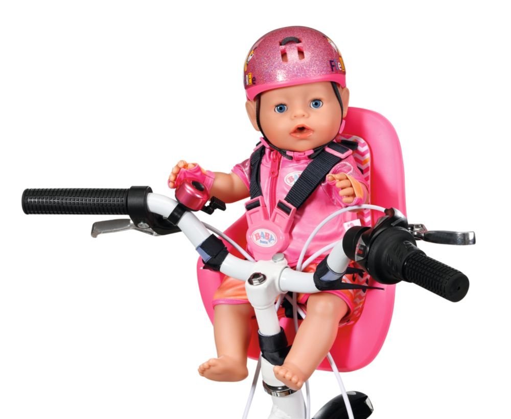 V tej športni kolesarski obleki je kolesarjenje ali vožnja s triciklom dvakrat bolj zabavna! Komplet kratkih hlač in kolesarske majice v roza in oranžni barvi bo zagotovo pritegnil pozornost vseh okoli sebe. V kompletu so barvno usklajene rokavice in sončna očala. Lutke BABY born in medvedki BABY born med kolesarjenjem še nikoli niso bili videti tako dobro.