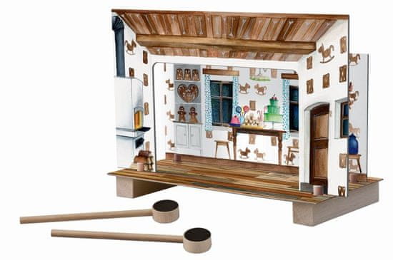 Magnetno gledališče z medenjaki, ki temelji na priljubljeni pravljici, je odlična zabava za mlade in stare. Figurice imajo v sebi zataknjen magnet, ki ga privlači magnet v povodcu.