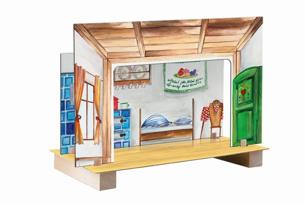 Vsebina pakiranja: 2 leseni podlagi, obojestranska ozadja iz trdega papirja, 2 vodilni palici in 5 figuric.