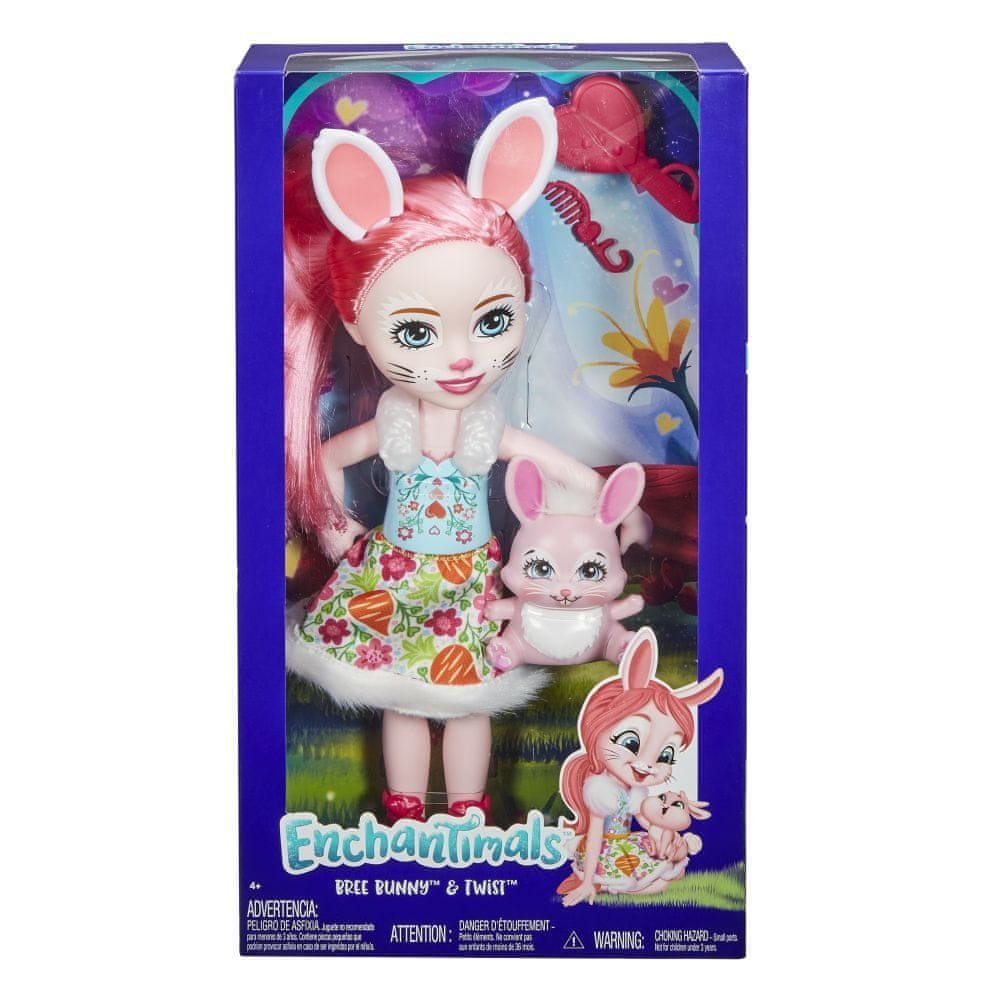 Igrajte se čarobne zgodbe s punčkami Enchantimals in njihovimi hišnimi ljubljenčki. Enchantimals so prikupna bitja, ki jih s hišnimi ljubljenčki povezuje posebna vez – vedno so skupaj in so videti enako! Izbirajte med lisico Felicity in Flick, jelenčico Danesso in Sprint ali zajčico Bree in Twist. Lutke so visoke 30 cm! Vsaka lutka ima pisano obleko in čevlje ter ušesa, ki jim kukajo iz las, da poudarijo njihov videz. Njihovi hišni ljubljenčki imajo svoje dodatke, kot so zlati rogovi in kosmati repi. Vsakemu duetu prijateljev Enchantimals je priložen ustrezen komplet dveh krtač za lase za zabavno oblikovanje. Prodajata se ločeno glede na trenutno razpoložljivost.