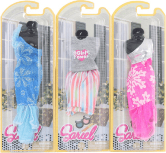 Boste svoji punčki kupili novo obleko? Velikost oblekic je približno 18 × 5 cm (odvisno od vrste). Pakirane so v plastični embalaži. Opomba: Fotografija je ilustrativna. Barve oblekic so dobavljene glede na zaloge.