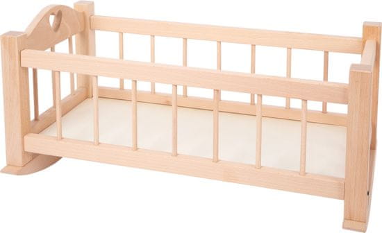 Ta zibelka za lutke iz naravnega lesa, lakirana s prozornim lakom, je klasika med pohištvom za lutke. Lepa oblika z izrezom v obliki srca kot ljubečim detajlom. Glavne značilnosti: spodbuja aktivno igro in trenira socialne veščine stabilna konstrukcija, kakovostna izdelavaprimerna za vrtce