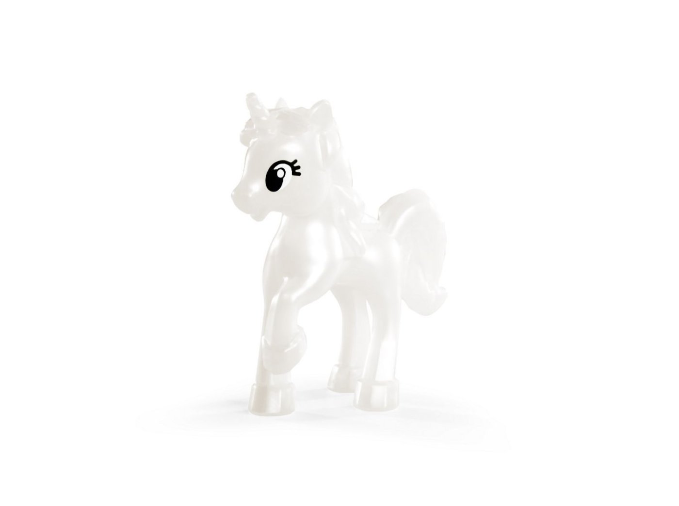 Damica Evička kot fantazijska princesa v bleščeči obleki z belim samorogom. Višina lutke je 12 cm.