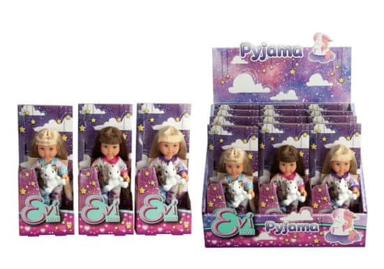 Evička lutka v pižami z igračo samoroga, 3 različni modeli. Velikost punčke 12 cm.
