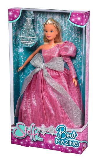 Lutka Steffi v čudoviti večerni obleki z velikim lokom. Celoten opis