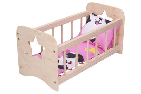 Lesena otroška posteljica je idealen pomočnik za vsako malo mamico, samo dodajte puhaste odeje in uspavajte otroka.