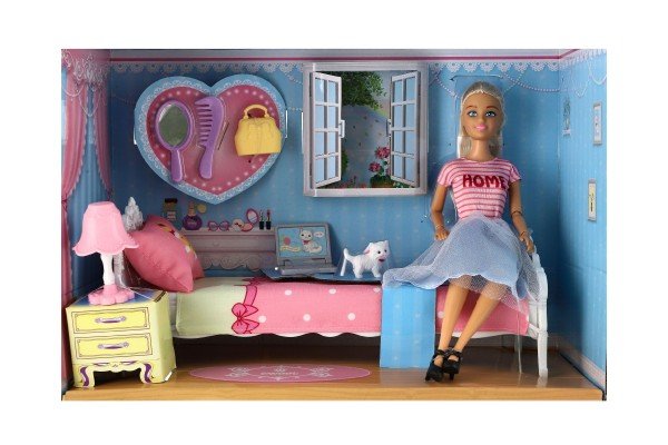 Plesalka Anlily z lastno sobo iz kartona je čudovito darilo za majhne deklice. Paket vsebuje veliko dodatkov, vključno s posteljo, toaletno mizico s svetilko, hišnim ljubljenčkom in še veliko več. Velikost lutke je 26 cm. Dimenzije paketa 37 × 27 × 17 cm. Primerno za otroke od 3. leta starosti dalje.