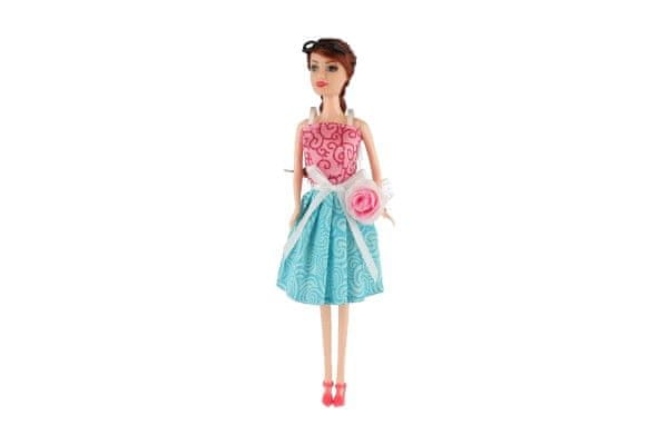 Krasna lutka s sklepnimi okončinami. Lutka ima elegantno obleko in dodatke. Velikost 30 cm. Primerna od 3. leta starosti dalje.