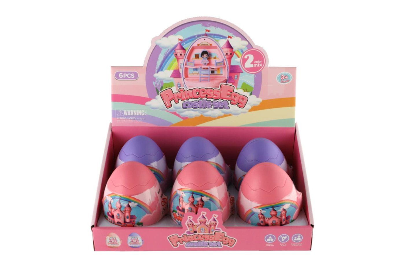 Princesa in njena palača, ki se skrivata v plastičnem jajcu, ki se odpira. Celoten opis