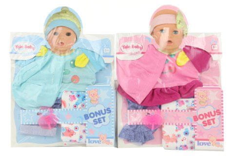 Oblačila za punčko velikosti približno 40 cm. Paket vključuje tudi plenico in dudo. Starost 3+