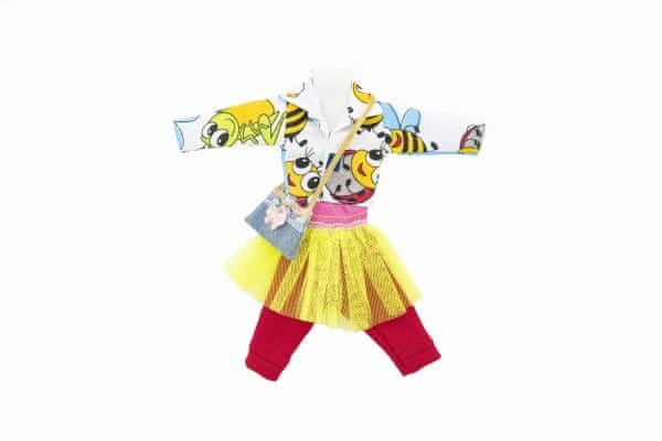 Tudi lutke se morajo včasih preobleči. Oblecite svojo lutko v kratko obleko ali plašč po lastni izbiri in jo pokažite na sprehodu. Izbirate lahko med več oblačili v različnih barvah in slogih. Lahko se pere pri 30°. V vrečki 22×30 cm. Primerno za otroke od 3. leta starosti.