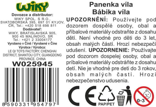 Miss Fairy. Velikost 19 cm. 4 barve las – zelena, roza, modra, rumena.