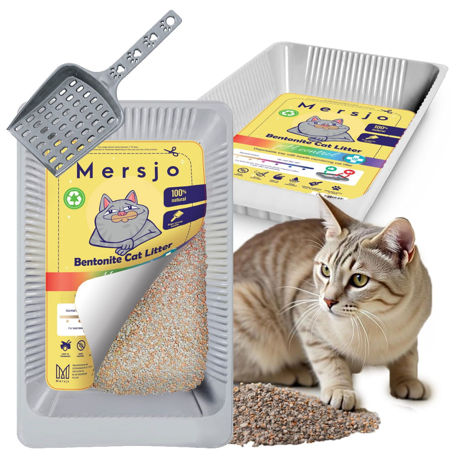 Mersjo Kotiček za enkratno uporabo, bentonitna mačja stelja PH CONTROL s koritom 2,7 l + zajemalka